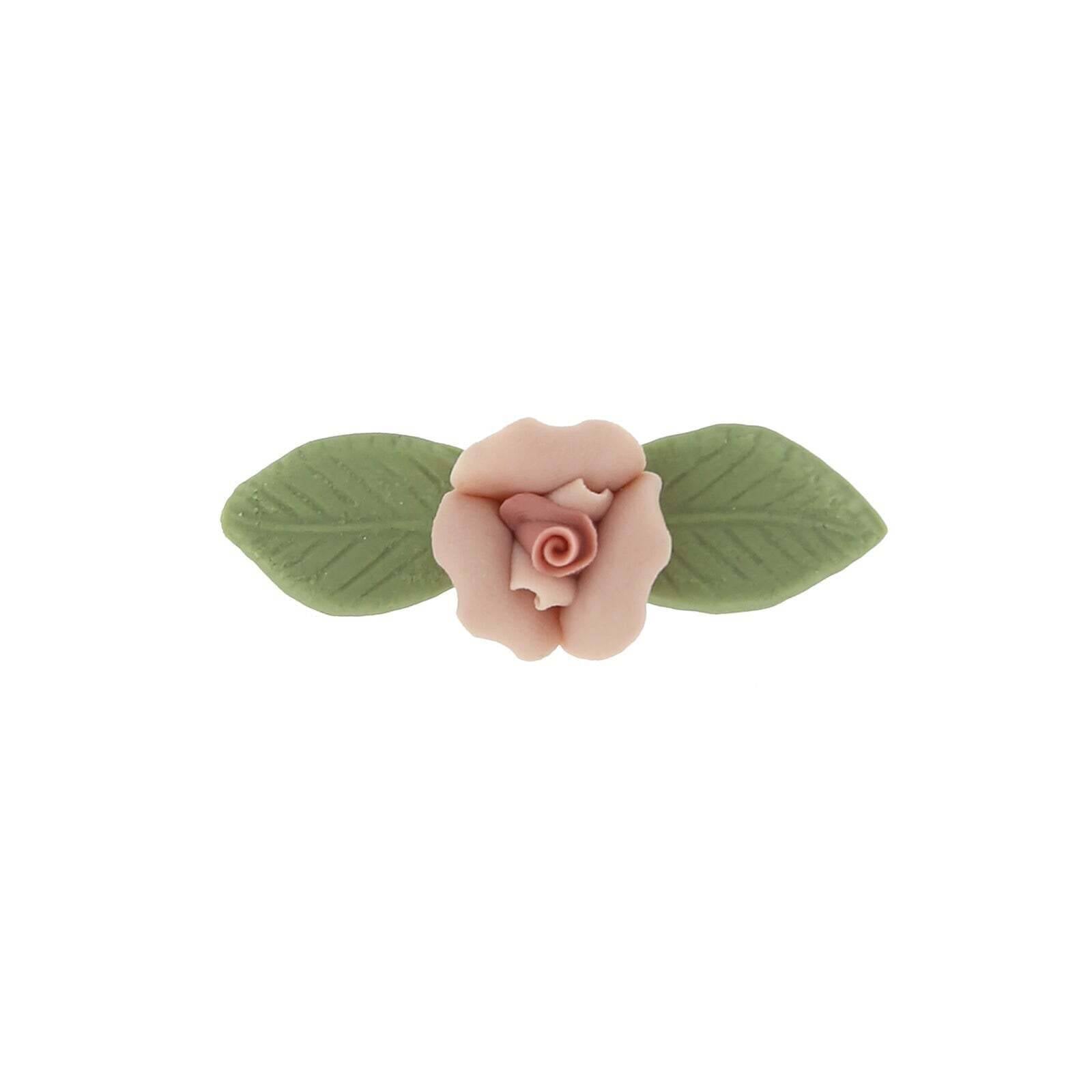 1928 Jewelry Genuine Pink Porcelain Rose & Green Leaf Bar Pin