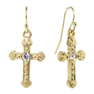 A perfect set of earrings for any occasion. Detailed cross features 2 small round clear crystals and hangs gracefully from a fish wire hook.