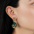 These elegant drop earrings feature teardrop-shaped marble green stones with swirling patterns, encased in intricate 14k gold dipped metalwork inspired by nature. Delicate branches and tiny buds wrap around the base, adding a touch of organic charm and vintage sophistication. The clip on closure ensures a secure and comfortable fit, making them a captivating addition to any jewelry collection.