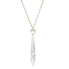 Our Icicle inspired pendant necklace is a mesmerizing embodiment of winter's delicate allure. Crafted with precision and grace, the pendant captures the essence of a crystalline icicle, gracefully suspended from a round crystal and a linking chain. This winter treasure will surely be bringing a touch of icy enchantment to your jewelry collection.