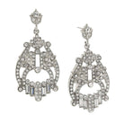 These stunning showstoppers will make a bold statement at your next event! These limited post drop earrings features an Art Deco inspired designed framework with post back settings and is embellished with clear round brilliant crystals & eightbaguette crystals.