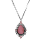 1928 Jewelry Light Rose Pink Crystal Pear Moonstone Pendant Necklace 16" + 3" Extender