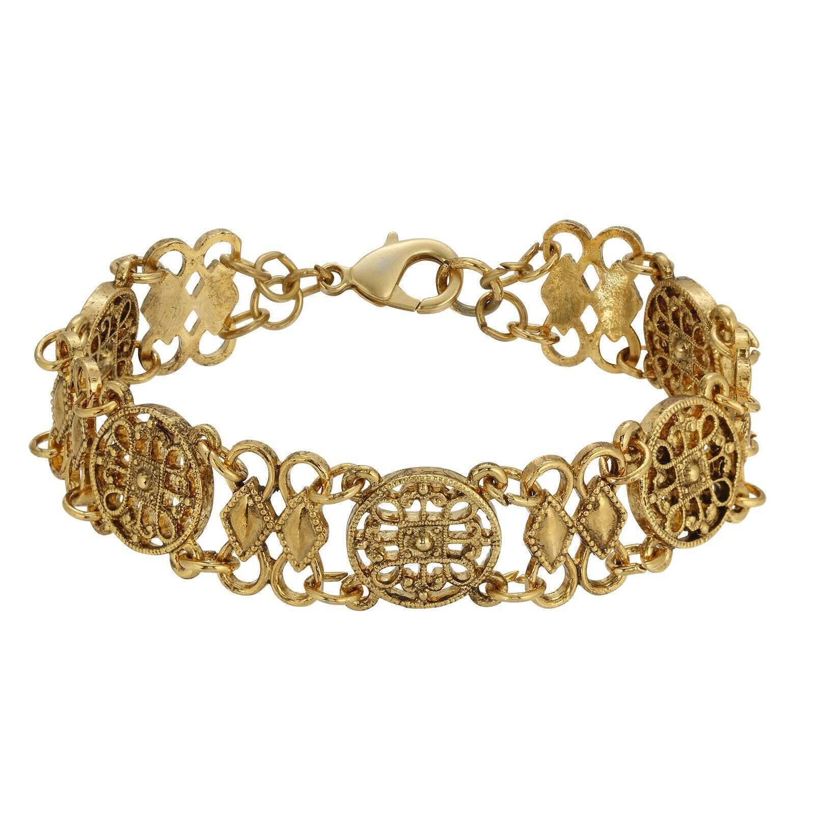 1928 Jewelry Meso Round Intricate Filigree Link Bracelet