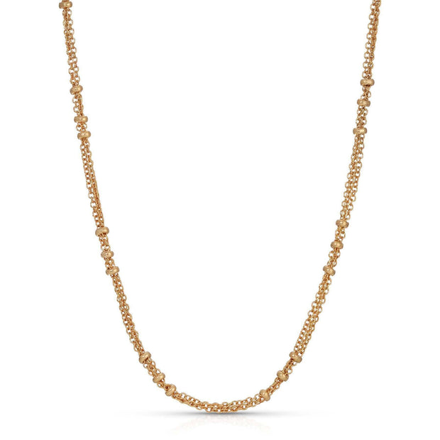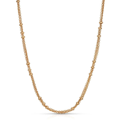 A fabulous addition to any jewelry box! This classic station chain necklace is dipped in 14k gold and comes with a lobster clasp closure. Works great with most any outfit.