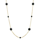 A simple and classy beaded necklace made perfect for any occasion. Featuring faceted black glass beads on a 17-inch 14k gold dipped linking chain.