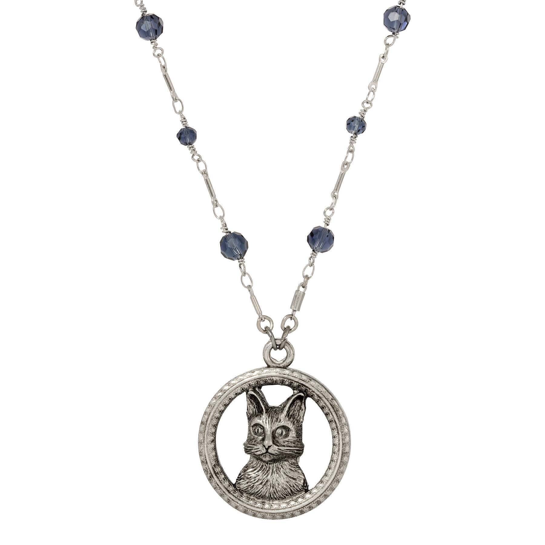 1928 Jewelry Montana Blue Crystal Floral Adorned Cat Pendant Necklace 28"