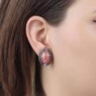 1928 Jewelry Oval Coral Quartz Stone & Light Rose Pink Crystal Post Earrings