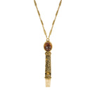 1928 Jewelry Oval Stone Etched Gold Whistle Pendant Necklace 28"