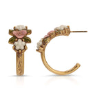 1928 Jewelry Pearly Eden Pink Rose Enamel Faux Pearl Half Hoop Post Earrings