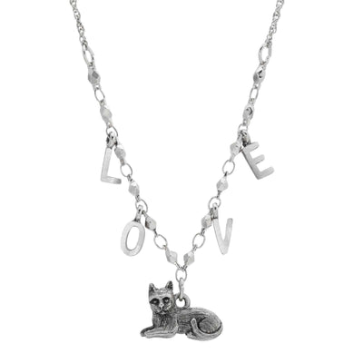 Attention animal lovers! We've created an adorable pewter cat pendant with LOVE initials designed to express your love for your little four-legged friends. This rope necklace comes with faceted bead accents, a 1928 logo tag and lobster clasp.