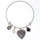 An adorable heart charm with embossed MOM represents the everlasting love of a mother in this adjustable bangle bracelet created by 1928 Jewelry. Cast in pewter tone mixed metal, this bangle is perfect both by itself or with layered bangles.
