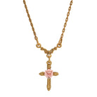 1928 Jewelry Pink Porcelain Rose Cross Pendant Necklace 16" + 3" Extension
