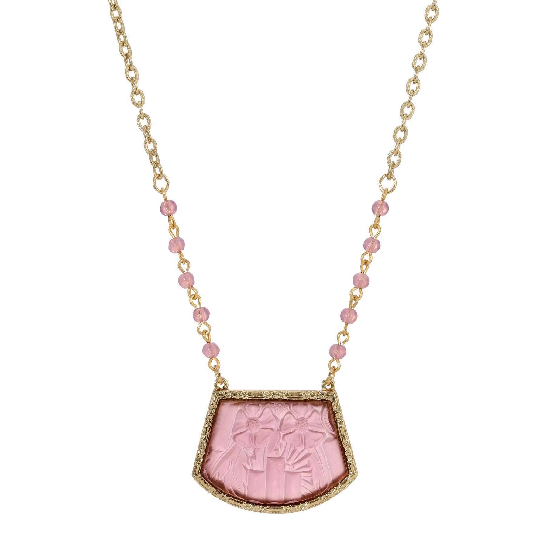 1928 Jewelry Purple Frosted Glass Flower Stone Pendant Necklace 16" + 3" Extender