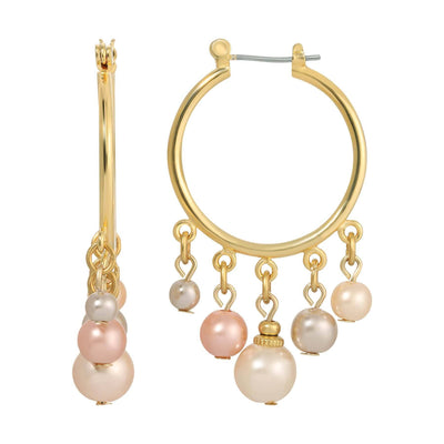1928 Jewelry Rosabella Multicolor Faux Pearl Hoop Earrings