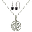 1928 Jewelry Round Filigree Hematite Cross Pendant Necklace & Earrings Set