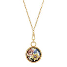 Multicolor floral glass pendant necklace with swivel on a 14K gold dipped rolo chain. This pendant necklace is truly vintage inspired masterpiece.