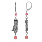 1928 Jewelry Round Smooth Bead Sitting Cat Dangle Earrings