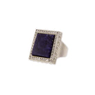 A breathtaking gem to complete your sophisticated look. This square-cut blue sodalite set on silver stone mixed metal decorated frame enhances your look.