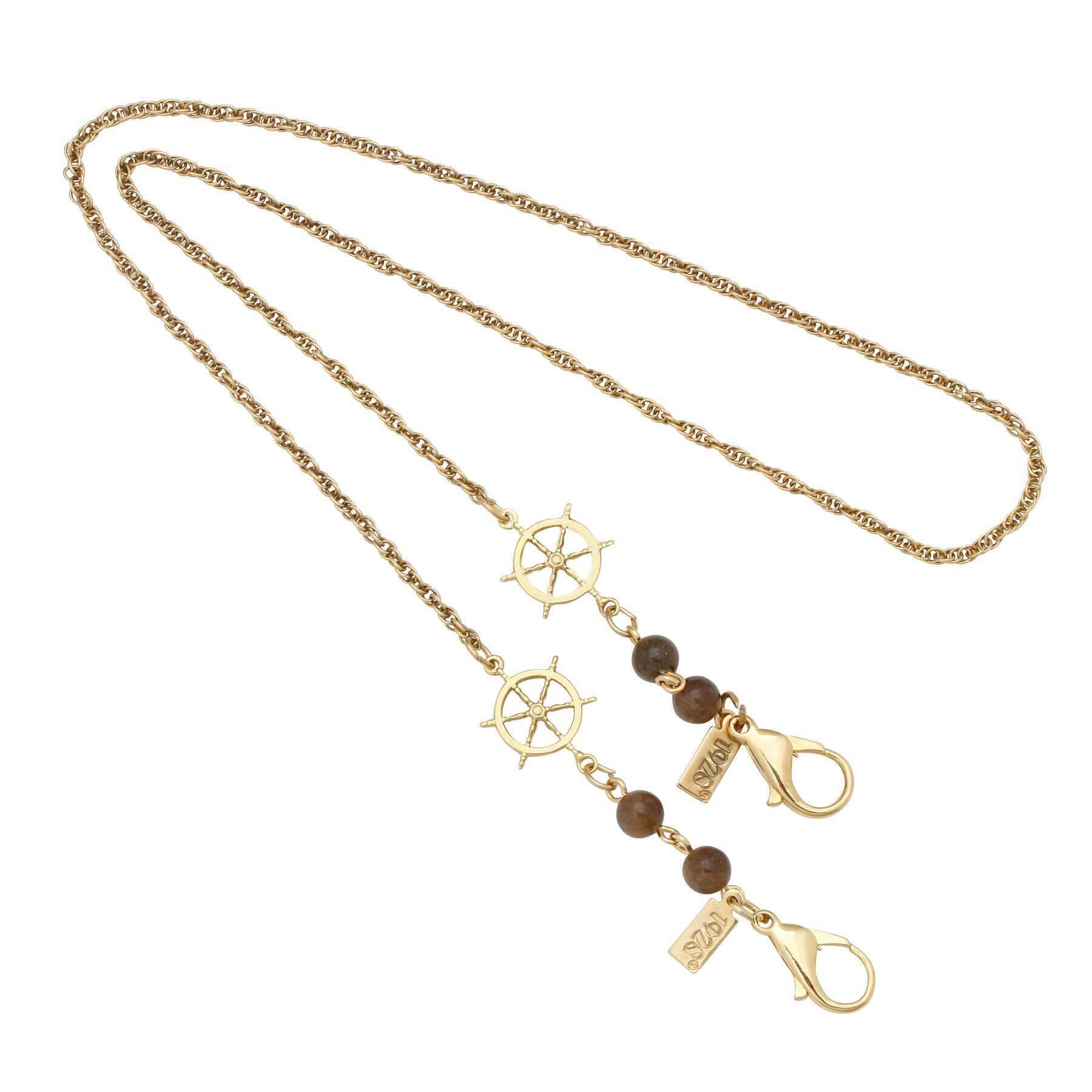 1928 Jewelry Ship Wheel Tortoise Brown Bead Face Mask Holder 22 Inches