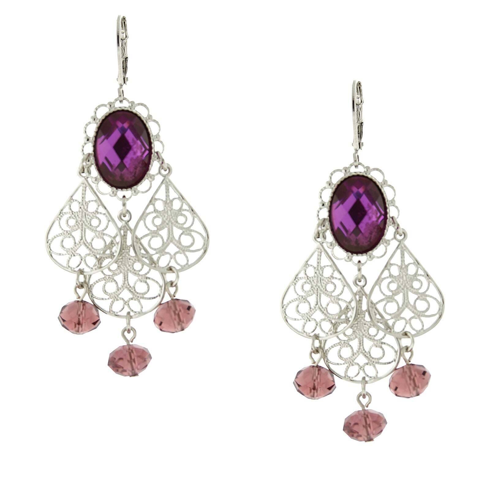 1928 Jewelry Filigree Chandelier Oval Crystal Drop Earrings