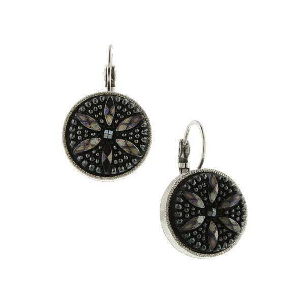 1928 Jewelry Jet Black Flower Stone Round Drop Earrings
