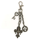 This pewter tone key holder features a Skeleton Key, Fleur De Lis Cross & Budded Cross Medallion. Any woman who loves all accessories, will love this key holder with charms. This key holder with lobster clasp will attach easily to chain a pants loop, the side of your bag- it's a must have for accessory lovers.