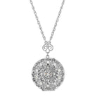 A gorgeous designed locket necklace featuring 35 hand assembled clear Czech crystals, a vintage designed front piece and a classic silver tone rope chain with lobster clasp.