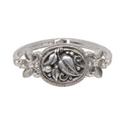 This vintage-inspired bracelet features an ornate oval centerpiece adorned with intricate leaf and vine motifs, framed by delicate beaded detailing. Two floral accents with sparkling crystal centers sit on either side, adding a soft, feminine touch to the design. The bracelet is finished with a convenient fold-over clasp for easy and secure wear.