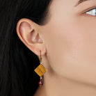 These elegant drop earrings feature striking square-cut gemstones set in gleaming frames, exuding a bold yet timeless style. A faceted crystal dangles gracefully below each stone, catching the light with every movement. Perfect for adding a vibrant pop of color to both everyday looks and evening ensembles.