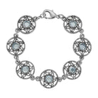 A treasure that you'll love to wear anywhere and everywhere, this magnificently designed bracelet features round link with star designs and 7 light sapphire channel crystals.