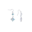 These beautiful dangling silver tone frame, diamond shape Austrian Crystal Elements drop earrings on French wire hooks are perfect for any occasion and great for gifting!
