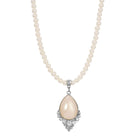 A white luster teardrop faux pearl with crystal accents dangle elegantly from a faux pearl strand. This necklace comes with a 3 inch extension chain and lobster clasp closure for a secure fit.