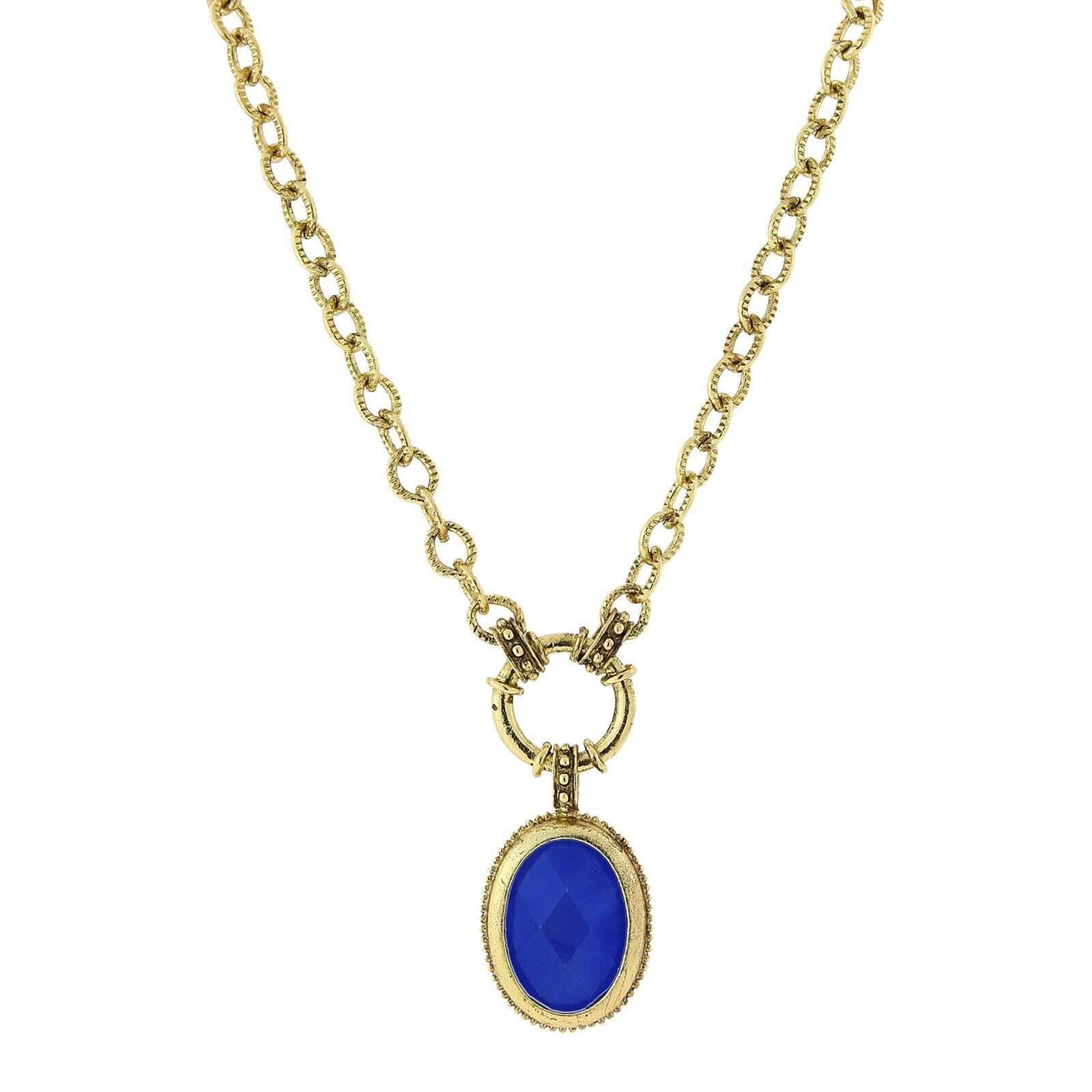 This stylish pendant necklace features a faceted oval stone encased in a textured gold tone frame and chain with lobster closure,