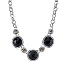2028 Jewelry Black Faceted Stone & Black Diamond Crystal Necklace 16" + 3" Extender