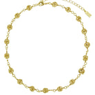 Perfect for wearing with most any outfit! This necklace features linked caged filigree beads dipped in 14k gold. A 3 inch extension chain is added for easy adjustment and comes with a lobster clasp for easy closure.