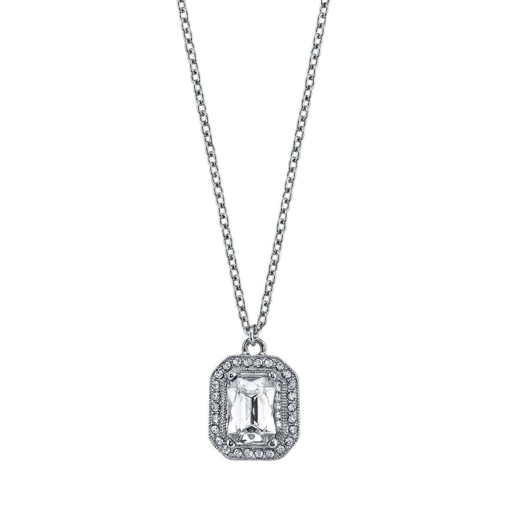 2028 Jewelry Octagon Stone & Crystal Pendant Necklace 16" + 3" Extender