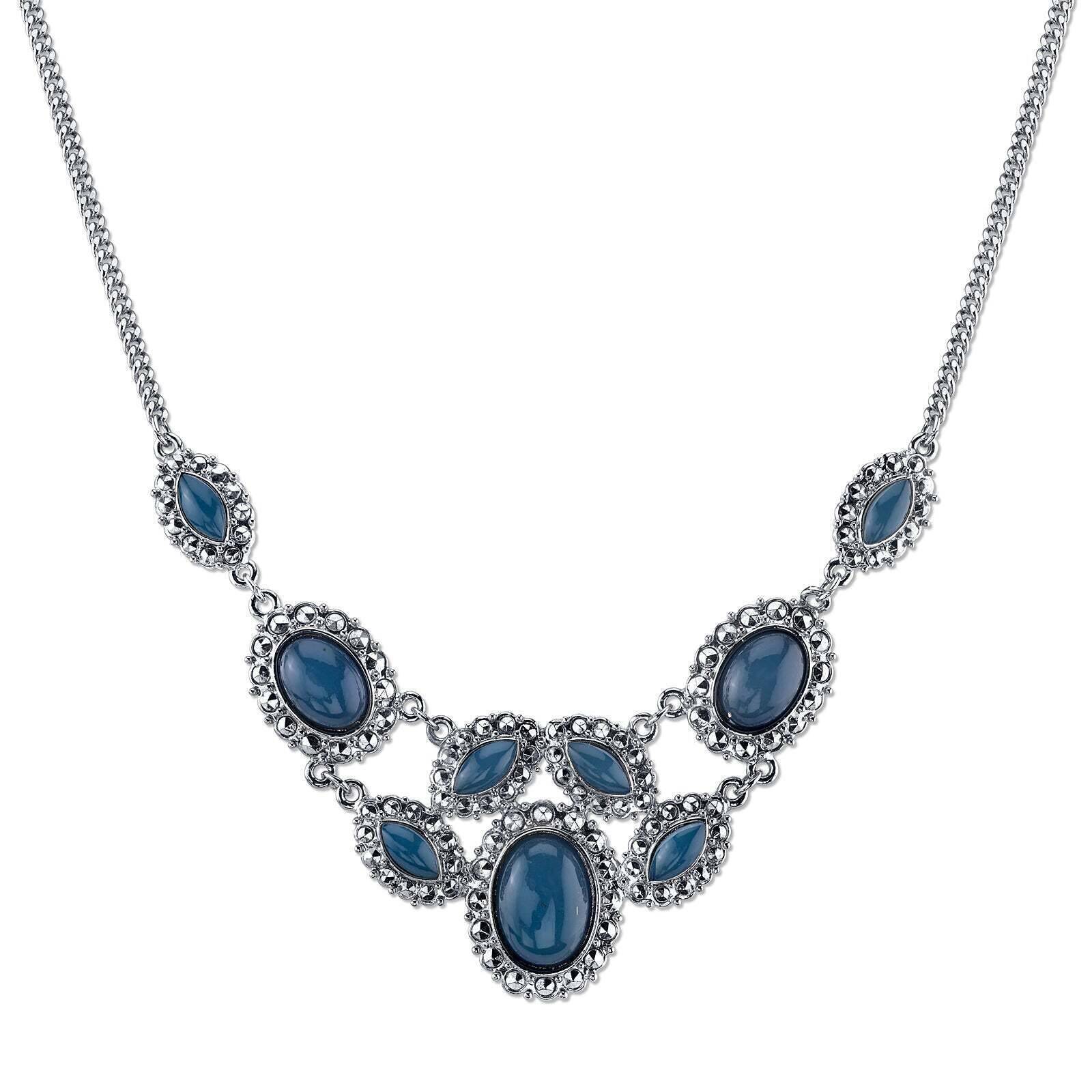 Our chic and stylish bib necklace features oval and navette shaped stones in textured silver tone settings. With its bold and beautiful design, bib necklace is an easy way to give your look full style power. A unique piece ideal for a special occasion or wear with your favorite t-shirt.