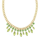 This large link chain necklace is decorated with a combination of round cut and navette cut green stones for a playful summer look.