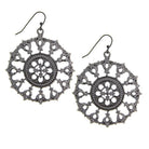 These vintage-inspired earrings showcase an intricate filigree design reminiscent of gothic cathedral rose windows. The antique silver-tone finish adds a bold, yet delicate charm, making them a striking accessory for any occasion. Lightweight and beautifully detailed, they offer a unique blend of elegance and artistic craftsmanship.