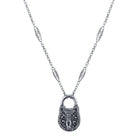 1928 Jewelry Antiqued Pewter Lock Pendant Necklace 30"