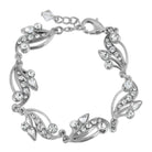 Stunning leaf-like filigree in a polished silver tone are embellished with dazzling clear crystals for a breathtaking look. A gorgeous accessory that adds vintage glamour to any ensemble. A comfortable and elegant design you'll feel like a queen. A unique piece ideal for a special occasion or wear with your favorite t-shirt to boost your look! This gorgeous bracelet makes an affordable gift. A genuine head-turning jewelry must-have.