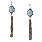 2028 Jewelry Burnished Brass Blue Ab Crystal Linear Tassel Earrings