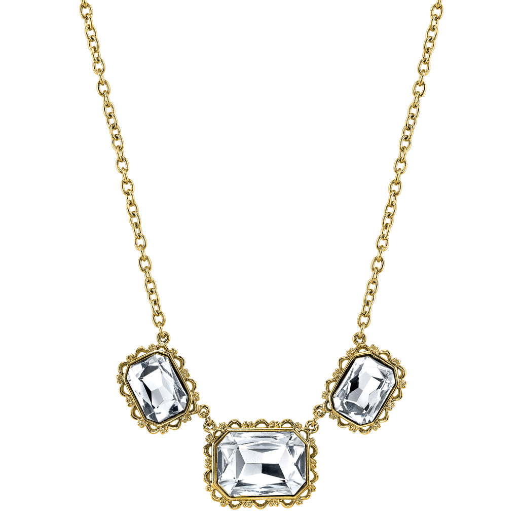 1928 Jewelry Crystal Octagonal Opulence Filigree Collar Necklace 16" + 3" Extender