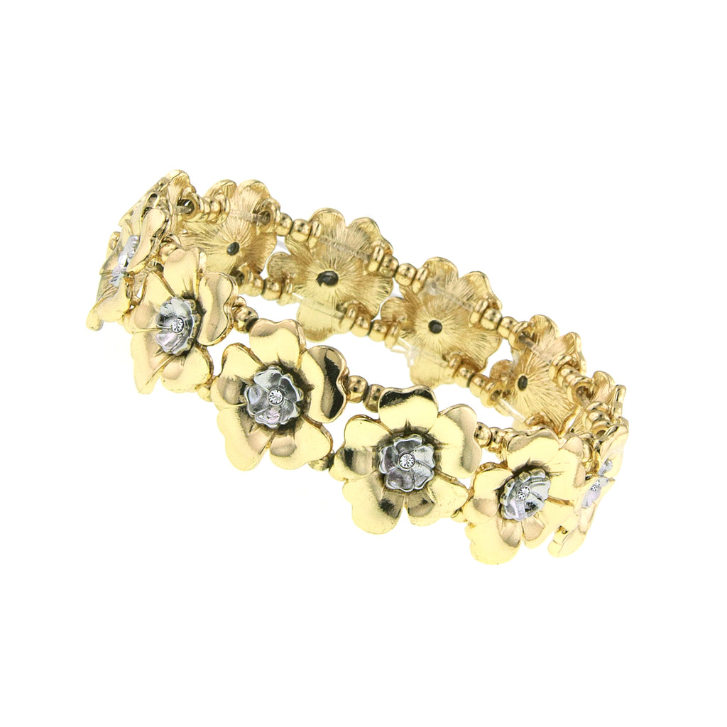 2028 Jewelry Two Tone Crystal Flower Stretch Bracelet