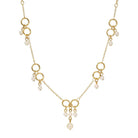 1928 Jewelry Golden Circles & Pearls Drop Necklace 15" + 3" Extension Chain
