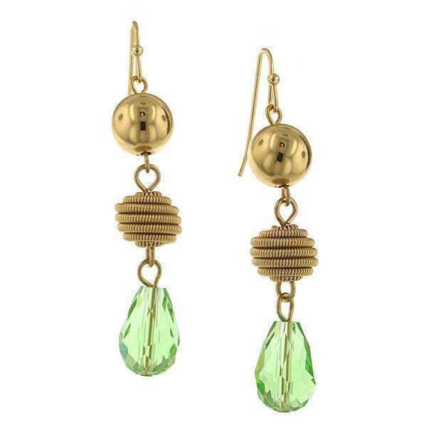 Step out in our dazzling green drop earrings. Green and gold tone beads dangle from French wire for a carefree, sparkling look.