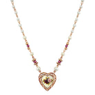 1928 Jewelry Rose Faux Pearl Purple Flower Heart Pendant Necklace 15" + 3" Extender
