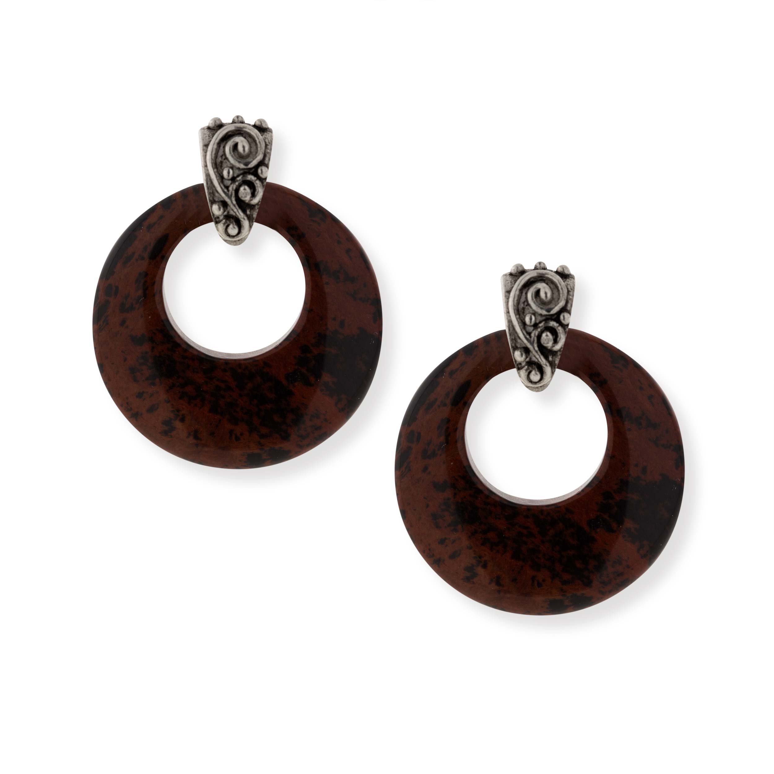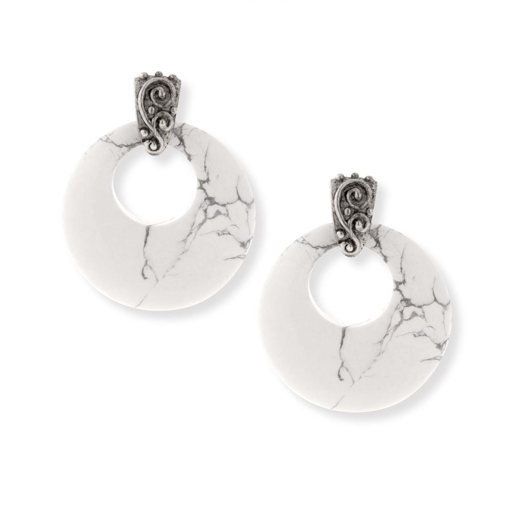 Make a glamorous statement with this pair of pierced round hoop earrings. A semi-precious hoop dangles ever so gently to give you that feminine style. With a pewter accent, these round hoop earrings are conveniently available in various color semi-precious stones for every day of the week and every mood!