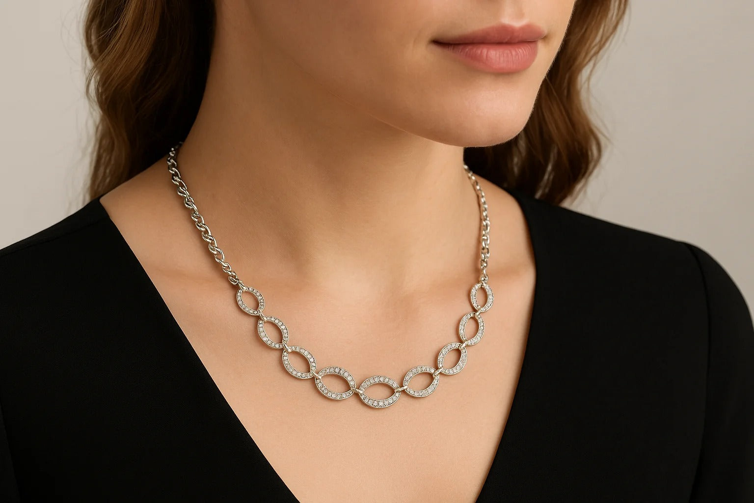 1928 Jewelry Circle Simulated Marcasite Link Necklace 16" + 3" Extender