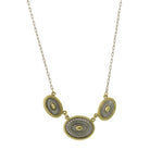 Its all in the details and this collar necklace can prove it. Three polished oval pendants of silver and gold tones are handcrafted to create a motif brimming with texture and embellished accents. Secures with a lobster clasp. Created for our Signature 1928 Collection.